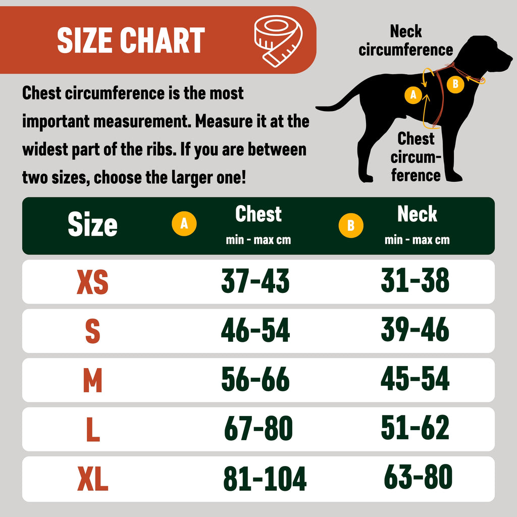 • XL: For gentle giants like Great Danes and Saint Bernards (82–104 cm chest).